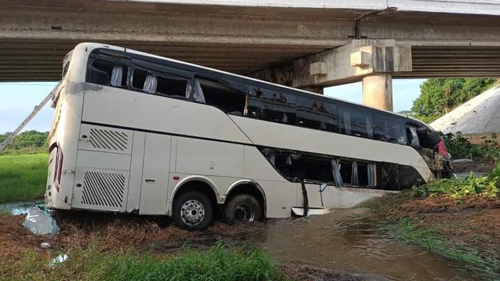 Cosamaloapan, Ver. Con un saldo de 7 personas fallecidas y 56 lesionados fue el resultado de un accidente de autobús turístico de dos plazas el cuál se salió de la autopista La Tinaja -Ciudad Isla y terminó debajo de un puente impactado contra uno de los pilares, a la altura de Cosamaloapan, de acuerdo con el reporte de autoridades 7 personas fallecieron y 56 mas resultaron lesionadas.