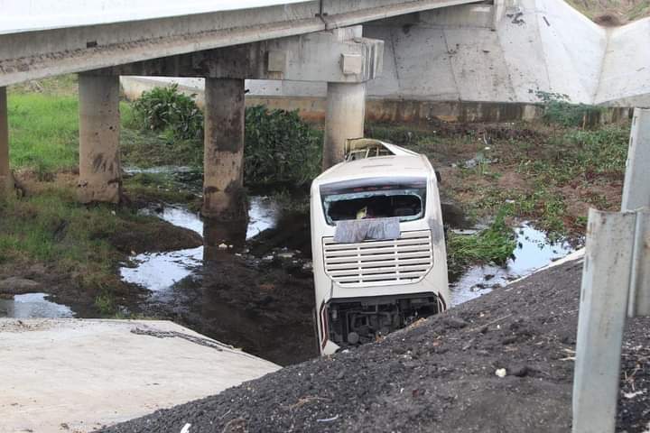 Hasta el momento se desconoce el motivo que originó que el chófer perdiera el control de la unidad y se saliera de carretera, terminando debajo de un puente, impactando la parte de enfrente de la unidad contra la infraestructura.