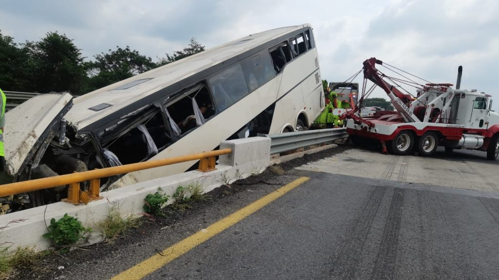 El aparatoso accidente se registró alrededor de las 02:00 de la madrugada de este martes 21 de noviembre a la altura del kilómetro 99, dónde la unida Mercedes – Benz blanco con número económico 544 con placas de circulación 233 HS 5 el cuál provenía de Chiapas con destinó a la ciudad de México.