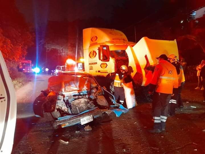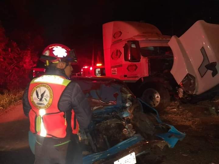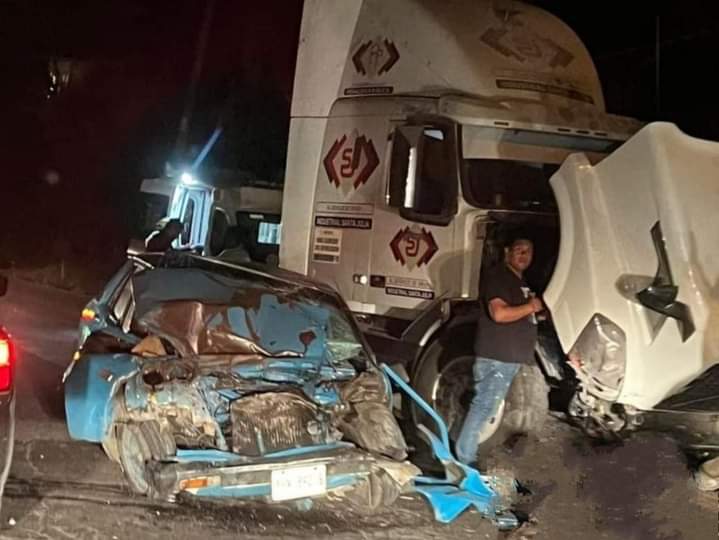 En el encontronazo se vio involucrado un automóvil Nissan Datsun de modelo atrasado el cuál se Impacto de frente contra un tractocamión international.