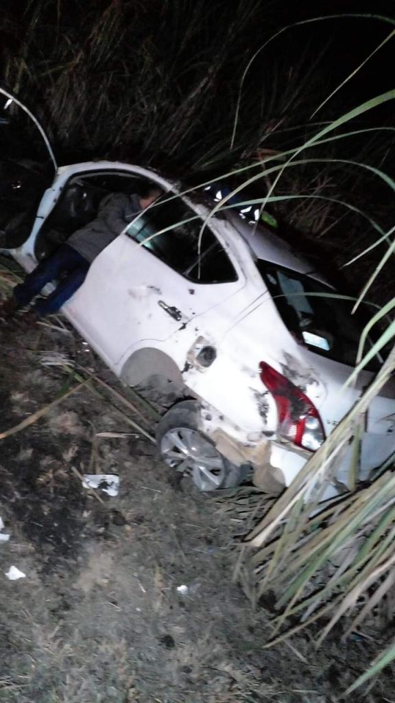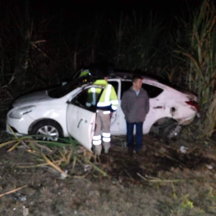 Cuitláhuac, Ver.- El exceso de velocidad y la falta de pericia al conducir, fueron causa de que un vehículo Nissan-Versa terminara completamente en perdida total y con sus ocupantes lesionados en el interior de la unidad, luego de que el conductor perdiera el control y volcara hasta terminar entre cañales.