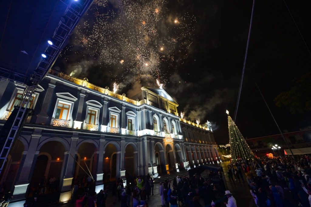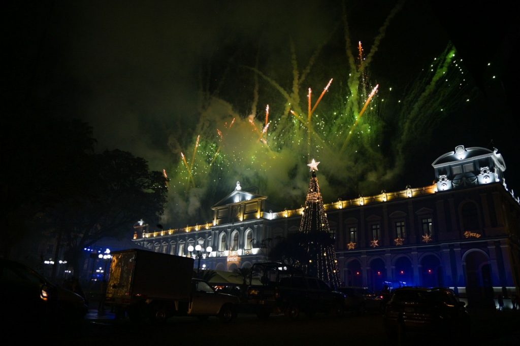 Una lluvia de colores iluminó el cielo con los imponentes fuegos artificiales que alegraron la noche, el Palacio Municipal cobró vida con este espectáculo en donde los asistentes disfrutaron del momento.