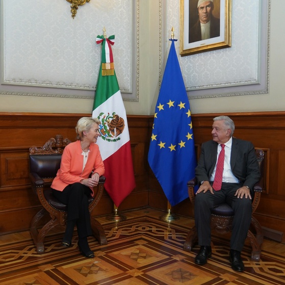 La presidenta de la Comisión Europea, el órgano ejecutivo de la UE realizó una visita de un día a México, donde culminó una gira por América Latina que incluyó a Brasil, Argentina y Chile, y que tuvo como meta reforzar lazos que admitió que se habían “descuidado”.