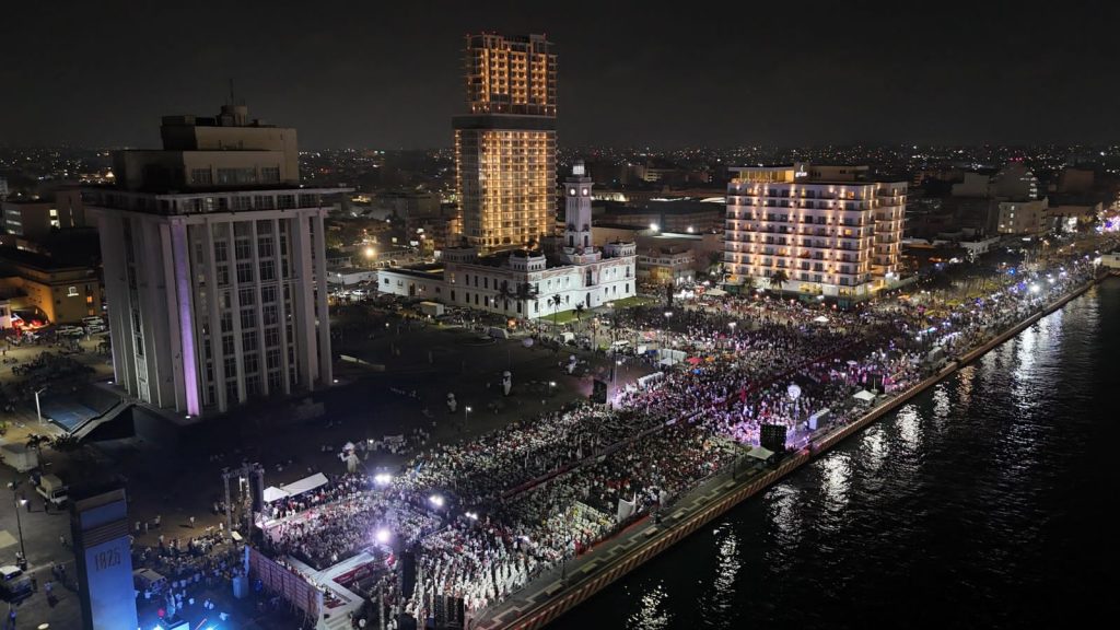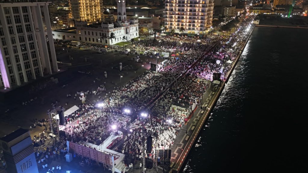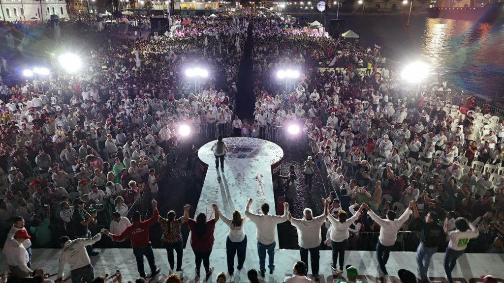 ^Malecón de Veracruz a reventar de simpatizantes, militantes y ciudadanos en general que apoyan la candidatura de Rocío Nahle.