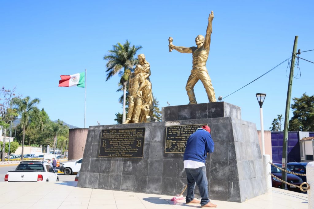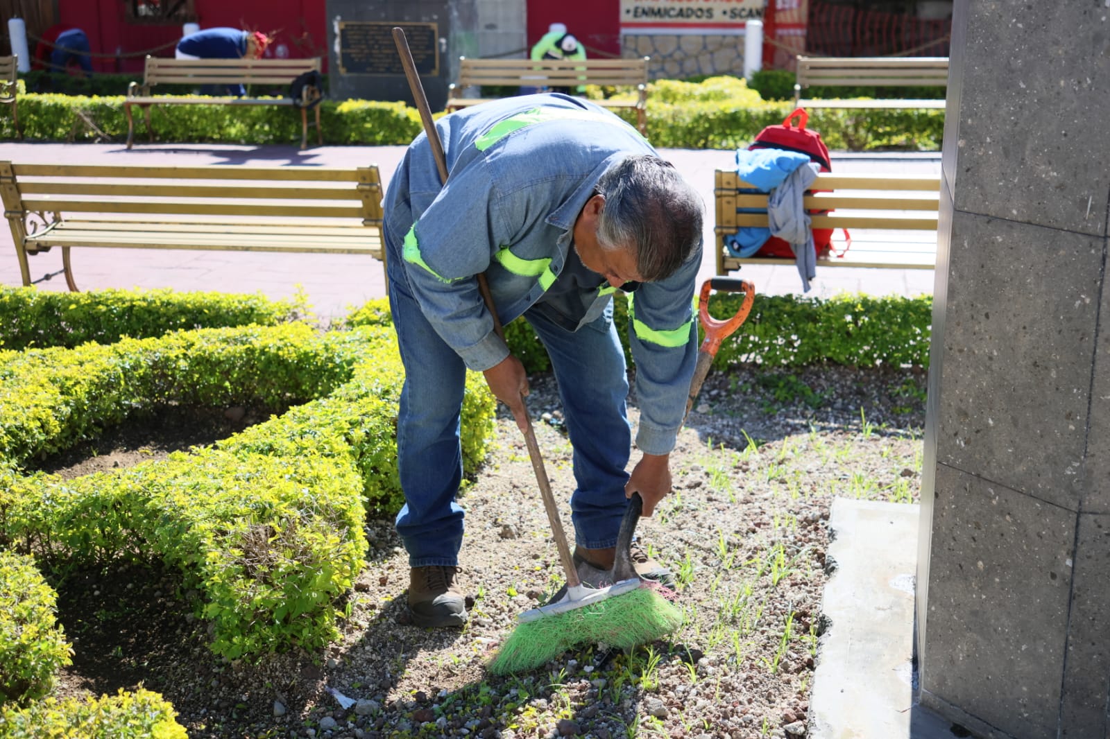Como parte de los preparativos previos al evento, cuadrillas de los departamentos de Limpia Pública, Parques y Jardines, Participación Ciudadana y Servicios Municipales realizan trabajos de mantenimiento en vialidades y espacios públicos, efectuando labores de limpieza general, rehabilitación de áreas verdes y pintura en los puntos donde se llevará a cabo este acto solemne.