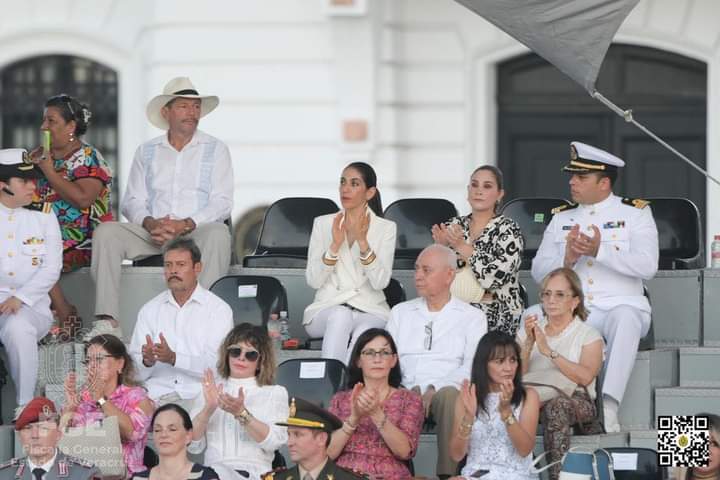 Veracruz, Ver., 4 de octubre 2023.- En la explanada de la Macroplaza del Malecón, la Fiscal General del Estado, Verónica Hernández Giadáns, asistió como invitada especial al acto conmemorativo por el “CCII Aniversario de la Creación de la Armada de México”, encabezado por el Gobernador Cuitláhuac García Jiménez y el Almirante Secretario de Marina, José Rafael Ojeda Durán.