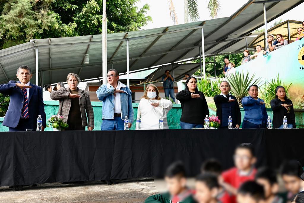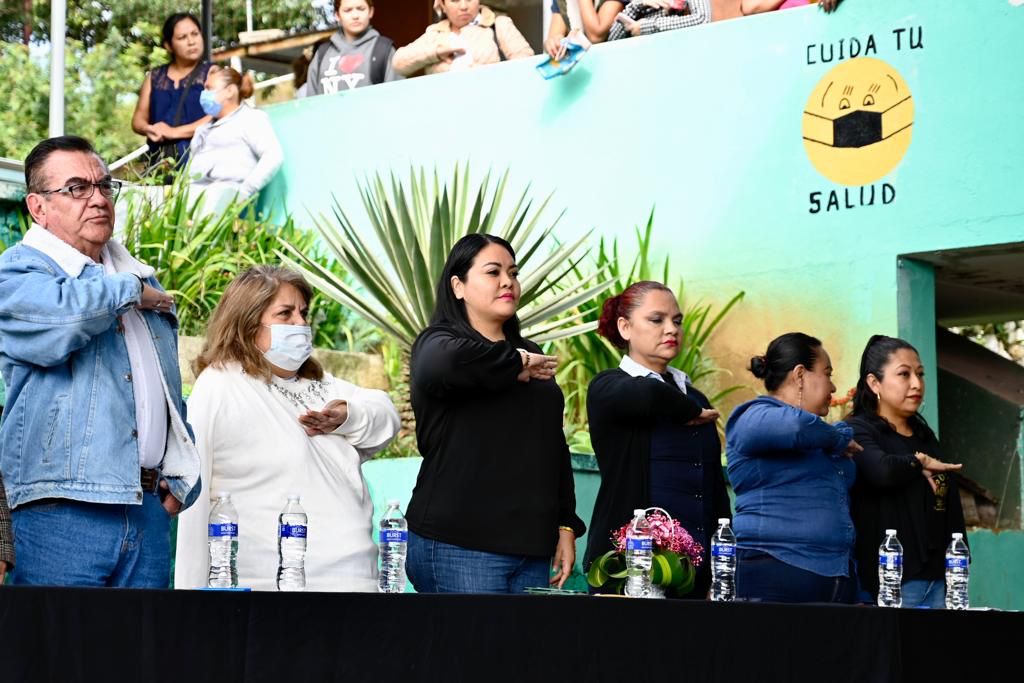 Este lunes por invitación de padres de familia y personal docente encabezado por la directora de la Secundaria General No 4, maestra Lourdes Vargas Rodríguez, la síndica Vania López participó en las actividades cívicas del lunes y constató los beneficios que la cuarta transformación le ha permitido lograr a dicha institución.