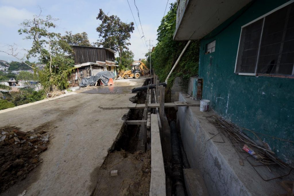 Al ser una obra integral, también se ejecuta la rehabilitación de drenaje sanitario y se instala tubería de polietileno para el drenaje, pozos de visita y descargas sanitarias, para desviar los escurrimientos situados a un costado de la elaboración del puente y a la ladera del río San Antonio, con esto, se evitará el reblandecimiento de la ladera.