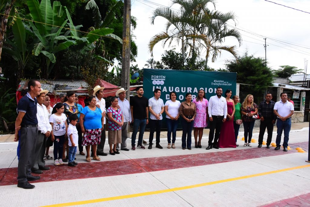 Fortín, Ver. – El proyecto de la Transformación que encabeza el presidente municipal Gerardo Rosales Victoria, avanza favorablemente en la comunidad de Santa Lucía Potrerillo, por tal motivo los vecinos recibieron una obra más de pavimentación con concreto hidráulico que incluyó también drenaje sanitario, autoridades municipales inauguraron esta tarde los trabajos.