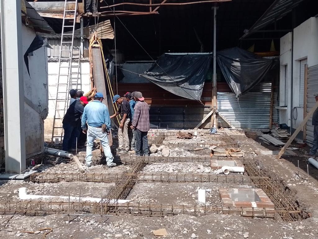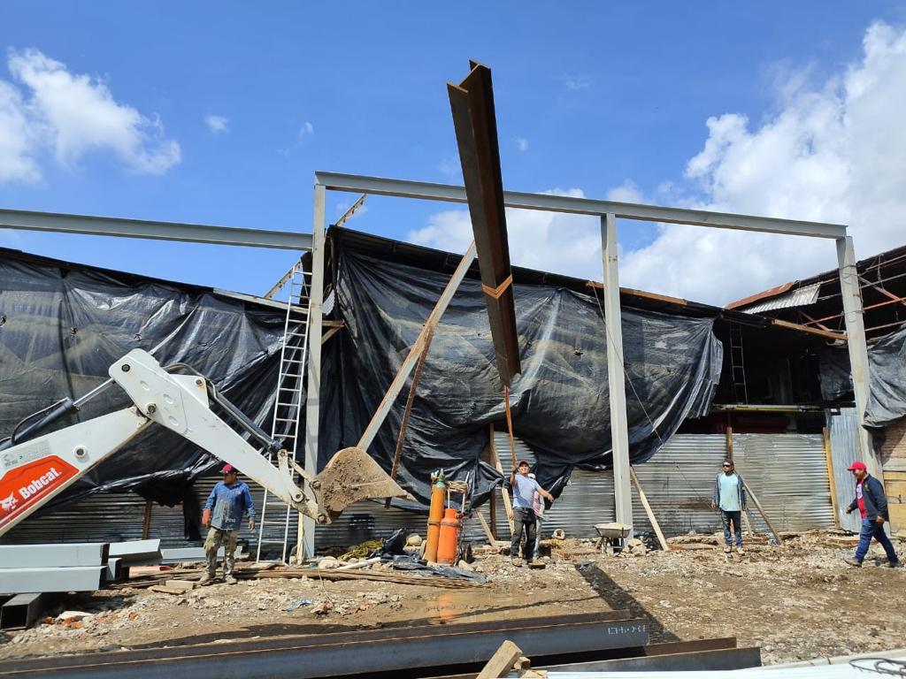 El Director de Obra Pública, Jorge Landero Medrano, explicó que también se colocan columnas, lo que conlleva a la estructura para situar el arco techo. “Actualmente se mantienen las labores en el tema hidráulico donde se estará ubicando tubería para suministrar la red de los 34 locales que se tiene como meta entregar con los servicios y estructura acorde a su giro comercial”.