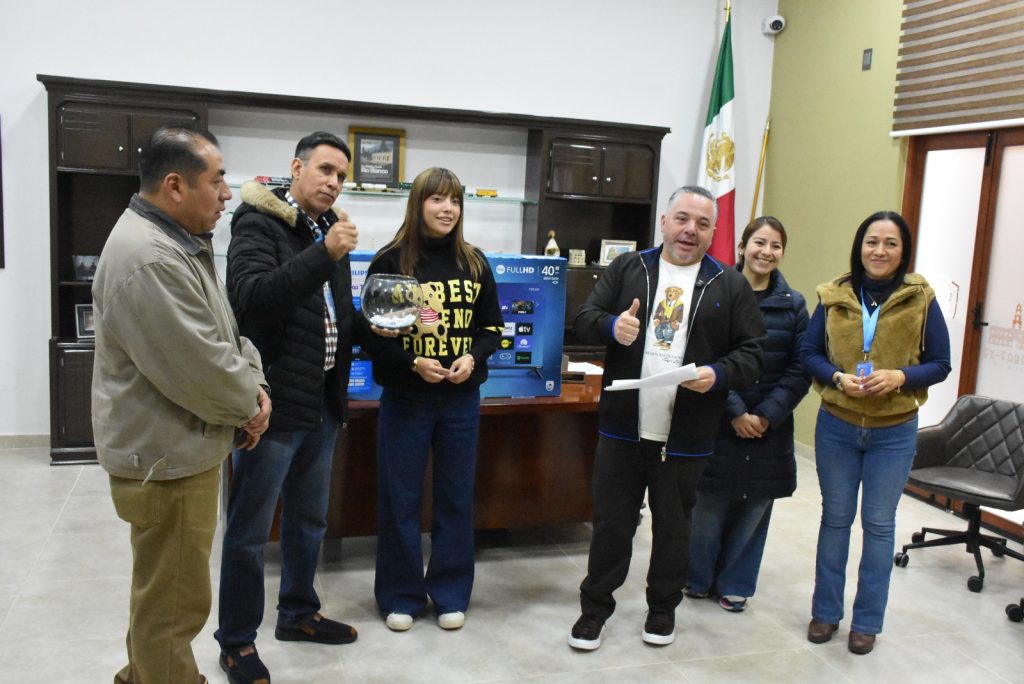 El afortunado ganador de la rifa de una pantalla fue el ciudadano Juan José Apale Jiménez, vecino del Fraccionamiento Las Haciendas, quien participó al cumplir con la entrega de su pino natural y obtener su respectivo boleto.