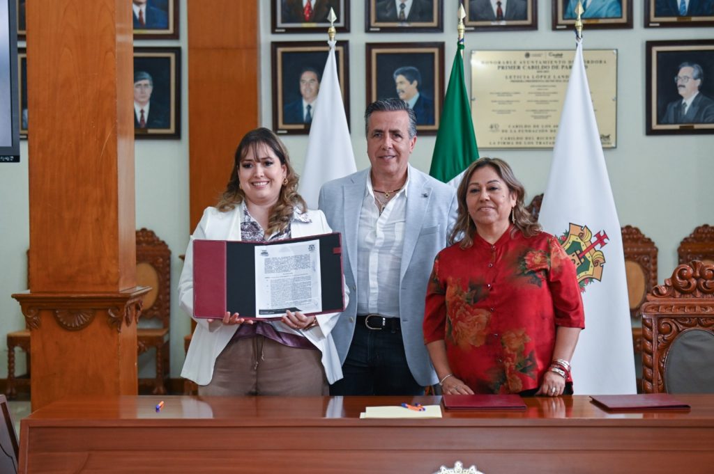 Córdoba, Ver., a 20 de abril de 2026.- Teniendo como objetivo crear un lazo entre el Ayuntamiento de Córdoba y diversas instituciones educativas tanto públicas como privadas, este lunes Manuel Alonso Cerezo, presidente municipal, e Irene Sedas González, síndica única, encabezaron la firma de cuatro convenios que permitirán a la comunidad estudiantil realizar sus respectivos servicios sociales y prácticas profesionales.