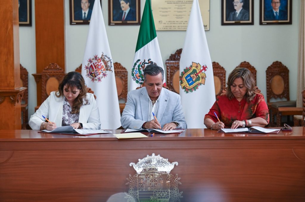Acompañaron a la firma de convenios Félix Hernández Salgado, secretario del Ayuntamiento, Nayibe Sacre González, regidora quinta, Nhesma Faride Telis Arano, regidora séptima, Dennis Araceli Lira Tosqui, coordinadora de Bienestar Social, Manuel Espinosa García, jefe de Educación, Patricia Rodríguez Campos, titular de Recursos Humanos, y en representación de las instituciones: Emilio Antonio Chávez Núñez, rector de UGMEX Campus Córdoba, Marco Antonio Pineda Ayala, director del CBTIS 47, Luis Omar Cuaxilo Vergara, director general de vinculación de CEUNI, y Arlette Calva Solís, rectora de la Universidad Mesoamericana Corporativo Vanguardista de Córdoba.