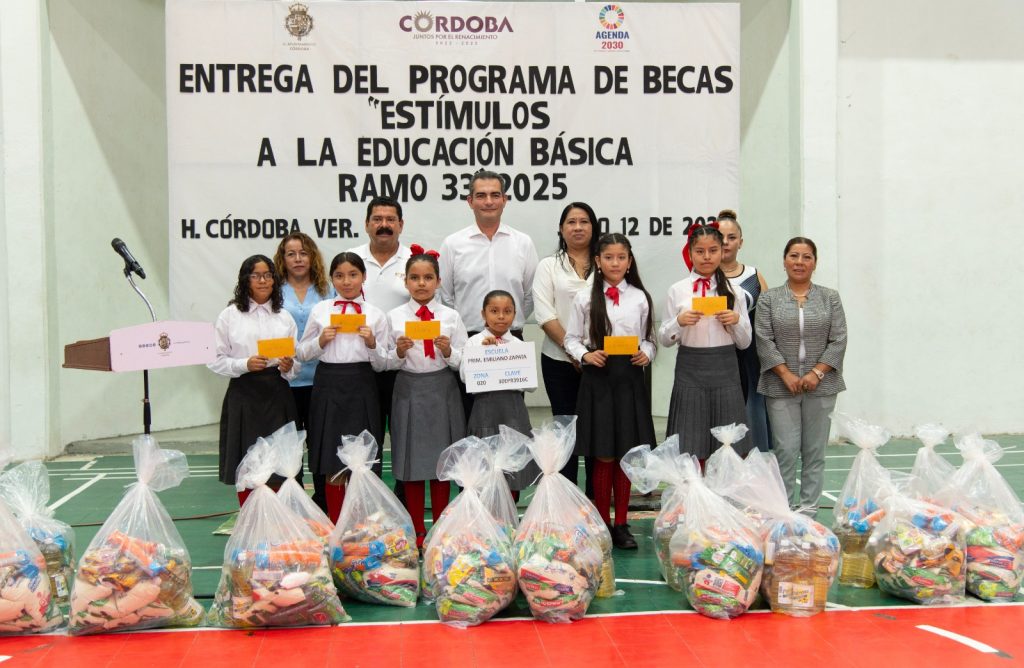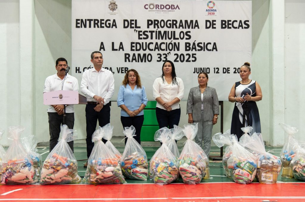 Córdoba, Ver., 12 de junio de 2025.- El Ayuntamiento de Córdoba inició este día con la entrega de las becas del Programa «Estímulos a la Educación Básica, Ramo 33» 2025 a 400 estudiantes de 64 planteles educativos de nivel primaria y secundaria, la cual consta de la dispersión de mil doscientos pesos en efectivo y cuatro despensas con artículos de la canasta básica.