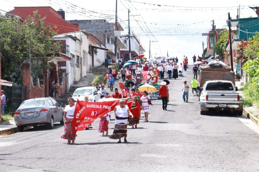 Fortín,Ver.- Con el izamiento de la bandera agrarista, este martes habitantes y autoridades municipales conmemoraron el 87 aniversario de la fundación de la colonia Melesio Portillo, un lucha que marcó una nueva etapa de la historia fortinense.