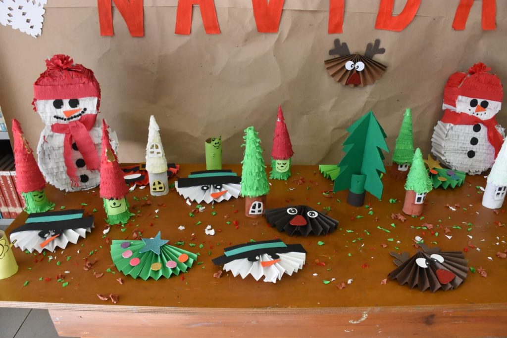 Los alumnos de Monte Salas, Pueblo de las Flores, Santa Lucia y Fortín Centeo pudieron realizar velas, calaberas, pinos, campanas, bastones, coronas, piñatas y más, principalmente hechos de material reciclado.