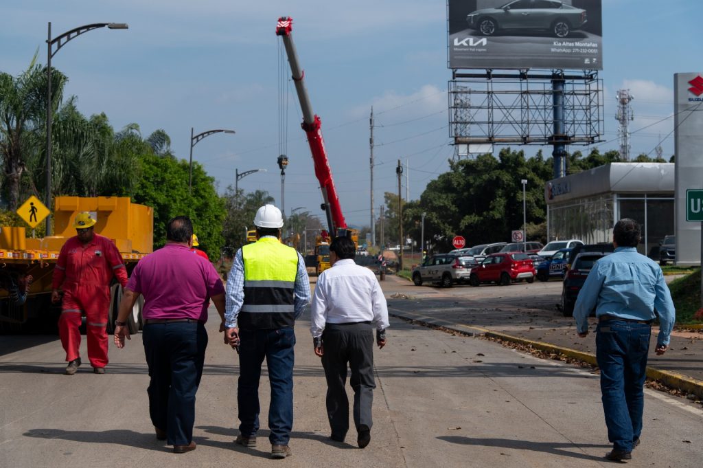 En torno a los trabajos que se están realizando el responsable de la obra Ing. Emigdio Morán Medorio detalló que el día de hoy ya tenemos la parte más crítica que ya realizamos en firme, «el cajón de concreto, posteriormente ya está la grúa 250 toneladas y los cajones, con eso a partir de este momento vamos a empezar a hacer las maniobras y posteriormente, sea ahora o mañana, que se pueda terminar, no depende nada más de lo que yo diga, sino de cómo se vaya compactando el desarrollo de la obra”.