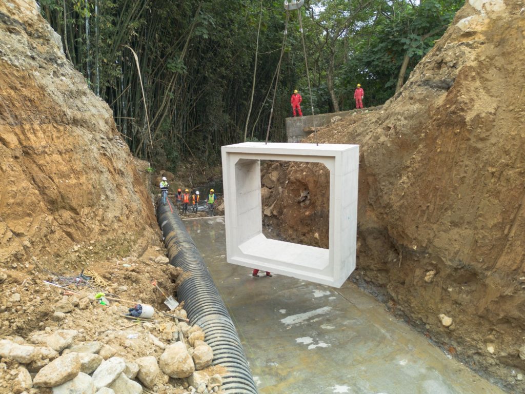 Serán al menos 34 cajones de concreto con un peso de 22 toneladas cada uno, con una longitud de 2 metros de largo, los que se están colocando dentro de la zona del socavón y se espera que para finales del mes de enero se esté concluyendo con la obra afirmó el alcalde en el lugar de los trabajos.