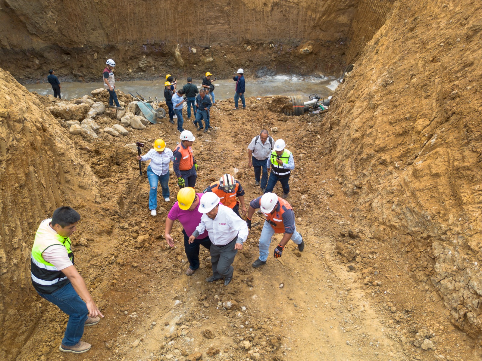 En el lugar acompañaron al alcalde a la visita, la regidora tercera Georgina Aguilar, el subdirector de Operación y Proyectos hidráulicos de Hidrosistema Oscar Trujillo Galván, el contralor Lauro Ramos, personal de Protección Civil y más empleados de obras.