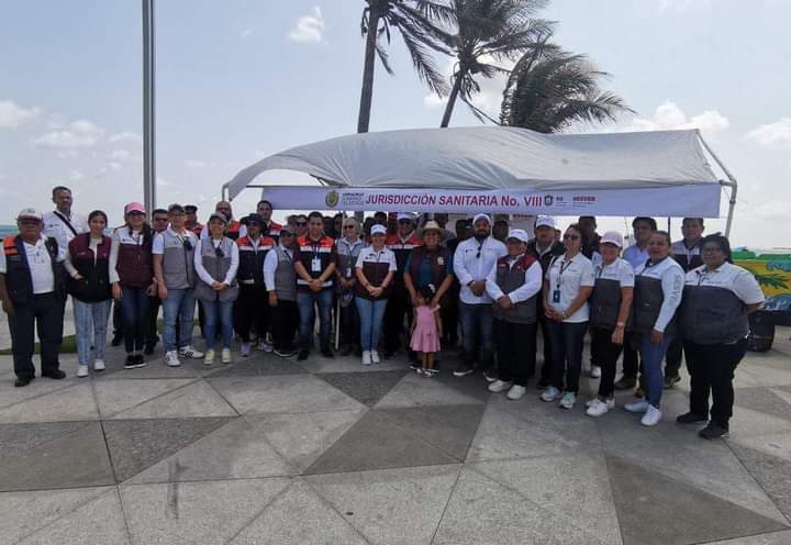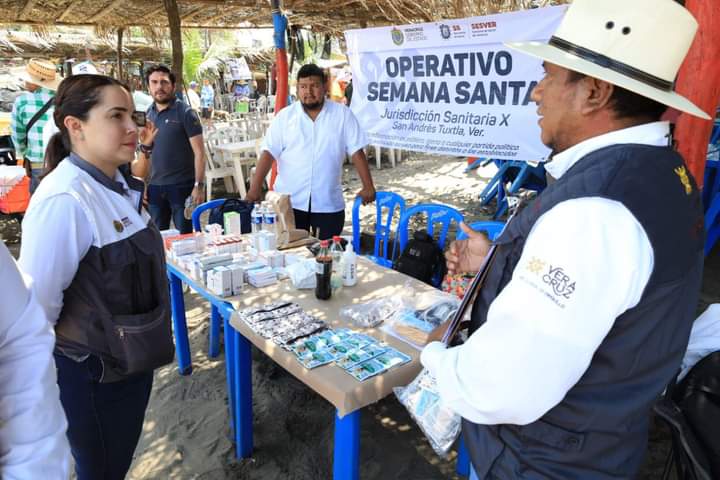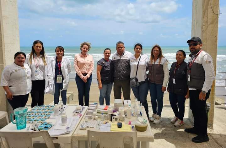 A lo largo de la zona costera de Los Tuxtlas, en conjunto con la Jurisdicción Sanitaria No. X con sede en San Andrés Tuxtla, y de forma simultánea en todas las jurisdicciones Sanitarias del Estado, con la supervisión de las y los Directores de SESVER, se constató el funcionamiento adecuado de los módulos de salud, instalados para brindar servicios a la población, tales como, consulta médica, suministro de medicamentos, asistencia prehospitalaria, hidratación, vigilancia epidemiológica y protección contra riesgos sanitarios, de igual manera, se orienta a las personas en actividades de promoción de la salud y prevención de accidentes.