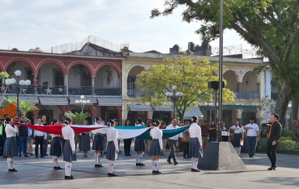 La escuela Secundaria y de Bachilleres José María Mena Sosa fue la institución que dirigió el acto cívico, el alumno Ángel Eduardo García Muñoz pronunció el Juramento a la Bandera precedido por el Himno Nacional en el que todos los presentes mostraron respeto para así dar paso a interpretar las notas al Himno a Veracruz que entonó la Banda Municipal.