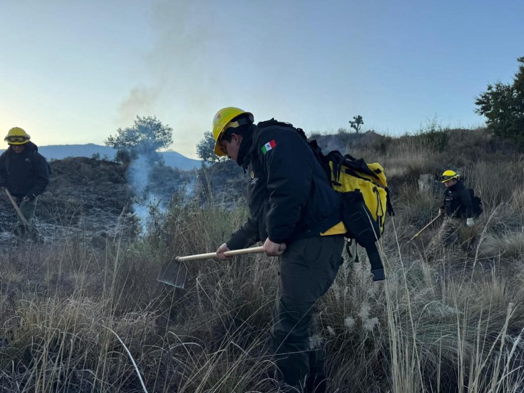 Desde las primeras horas de este día, el personal inició labores de combate y contención del fuego. Las acciones se desarrollaron de manera coordinada bajo el Sistema de Comando de Incidentes, en conjunto con la Brigada Rojo 4 de la Comisión Nacional Forestal (CONAFOR) y Protección Civil Municipal, lo que ha permitido avanzar en el control del siniestro.