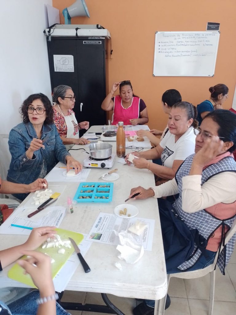 En el taller se detalló que para la elaboración de los jabones el producto básico es la glicerina, base ya sea blanca o transparente y se obtiene a través de un proceso natural, se ocupan algunas esencias, algunos colorantes y no se requiere tanta inversión.