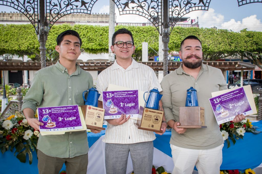 Luego de seleccionar a 6 de 16 competidores que iniciaron su proceso clasificatorio el pasado jueves, este viernes fueron premiados los tres primeros lugares luego de una ardua competencia en la que obtuvieron los mejores puntajes otorgados por jueces profesionales de reconocimiento nacional e internacional y certificados por la Asociación Mexicana de Cafés y Cafeterías de Especialidad (AMCCE).