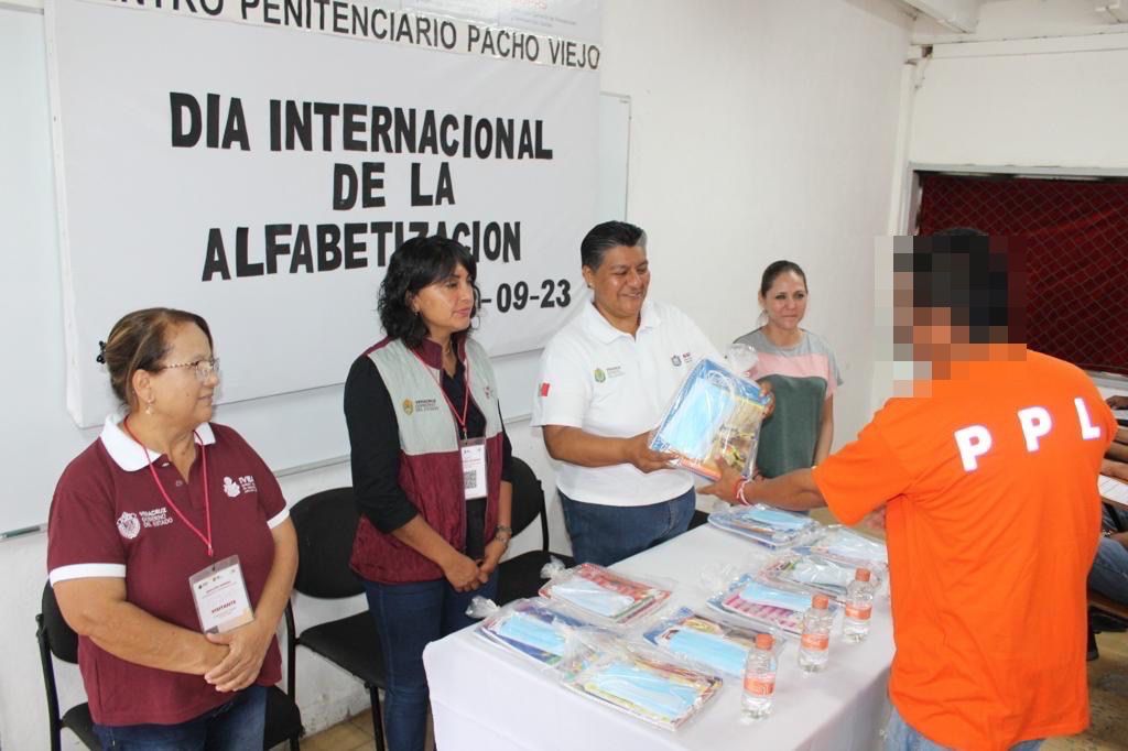 Para conmemorar el Día Internacional de la Alfabetización, mediante la Dirección General de Prevención y Reinserción Social fueron entregadas 40 constancias de alfabetización y 123 certificados en los centros penitenciarios de Acayucan, Amatlán de los Reyes, Chicontepec, Coatzacoalcos, Cosamaloapan, Jalacingo, Misantla, Pacho Viejo, Pánuco, Papantla, Poza Rica, San Andrés Tuxtla, Tuxpan y en el Modulo de Prisión Preventiva de Veracruz.