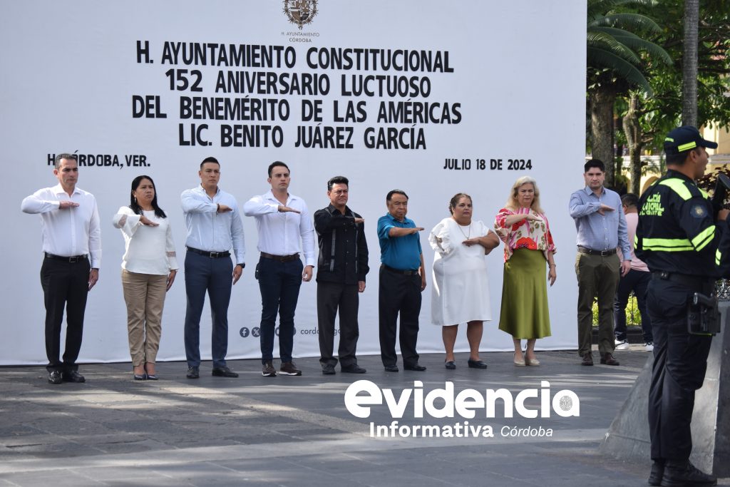 H. Córdoba Ver. 18 de julio de 2024. – El presidente municipal de Córdoba, Juan Martínez Flores encabezó este día la ceremonia por el 152 aniversario luctuoso del ex presidente de México, Benito Juárez García; fue acompañado por representantes de distintas logias de la masonería cordobesa. En este evento realizado en la explanada del parque 21 de Mayo reconocieron la obra y el legado de las leyes de reforma, del también llamado Benemérito de las Américas.