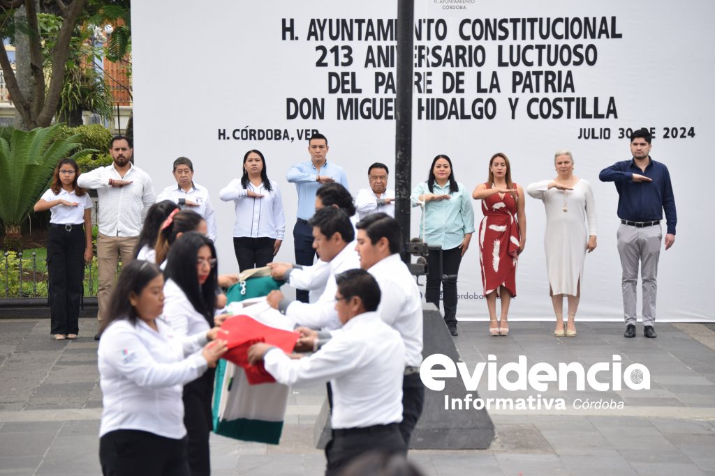 H. Córdoba Ver. 30 de julio de 2024. – El presidente municipal de Córdoba, Juan Martínez Flores, encabezó este día la ceremonia por el 213 aniversario luctuoso de Don Miguel Hidalgo y Costilla; el izamiento de la bandera a media asta correspondió a Jonathan Francisco Rosas Blanco, regidor quinto, mientras que los trabajadores sindicalizados del ayuntamiento fueron los encargados del acto cívico en la explanada del parque 21 de Mayo.