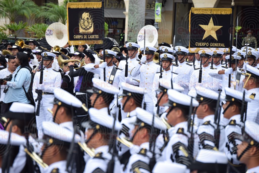 Finalmente, se llevó a cabo un recorrido por las principales calles de la ciudad por la Heroica Escuela Naval, iniciando por elementos de Tránsito Municipal para dar paso a los Cadetes de la Escuela Naval Militar integrados por la escolta, banda de guerra, la sección de Cadetes, vehículos artillados de personal de Infantería de Marina, la Compañia de Defensas Rurales, la Unidad Municipal de Protección Civil, Bomberos y Cruz Roja Mexicana.