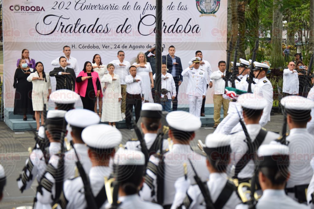 Córdoba, Ver., (24 de agosto de 2023).- Engalanados con la presencia de la Heroica Escuela Naval Militar, autoridades municipales encabezadas por el Presidente Juan Martínez Flores y en compañía del Capitán de Navio Cuerpo General Diplomado del Estado, Carlos Alberto Morales Cruz en representación del Director Mayor de la Heroica Escuela Naval Militar, fue conmemorado el 202 aniversario de la Firma de los Tratados de Córdoba.