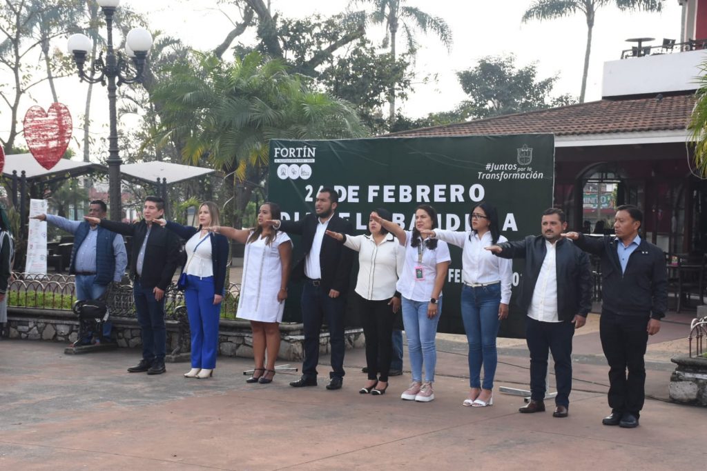 Fortín, Ver. – Con un mensaje de unidad y orgullo emitido por el Secretario del Ayuntamiento, Osmar Eduardo Martínez Vasquez, en representación del presidente municipal Gerardo Rosales Victoria, este sábado las autoridades municipales y la escuela secundaria Xicotencatl conmemoraron el Día de la Bandera Mexicana en un acto cívico.