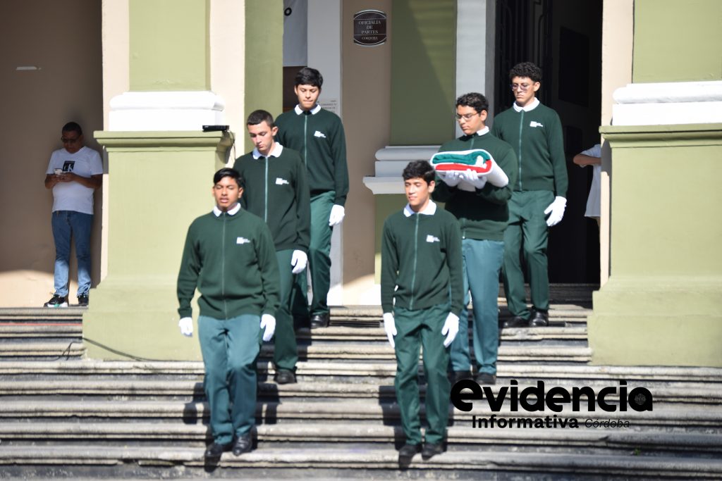 El juramento a la Bandera fue responsabilidad del alumno, David Huerta García, mientras que los presentes entonaron el Himno Nacional y el de Veracruz, acompañados por la Banda Municipal de Música.