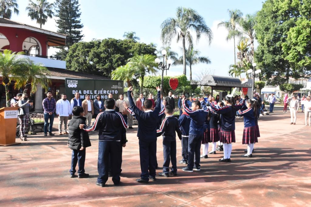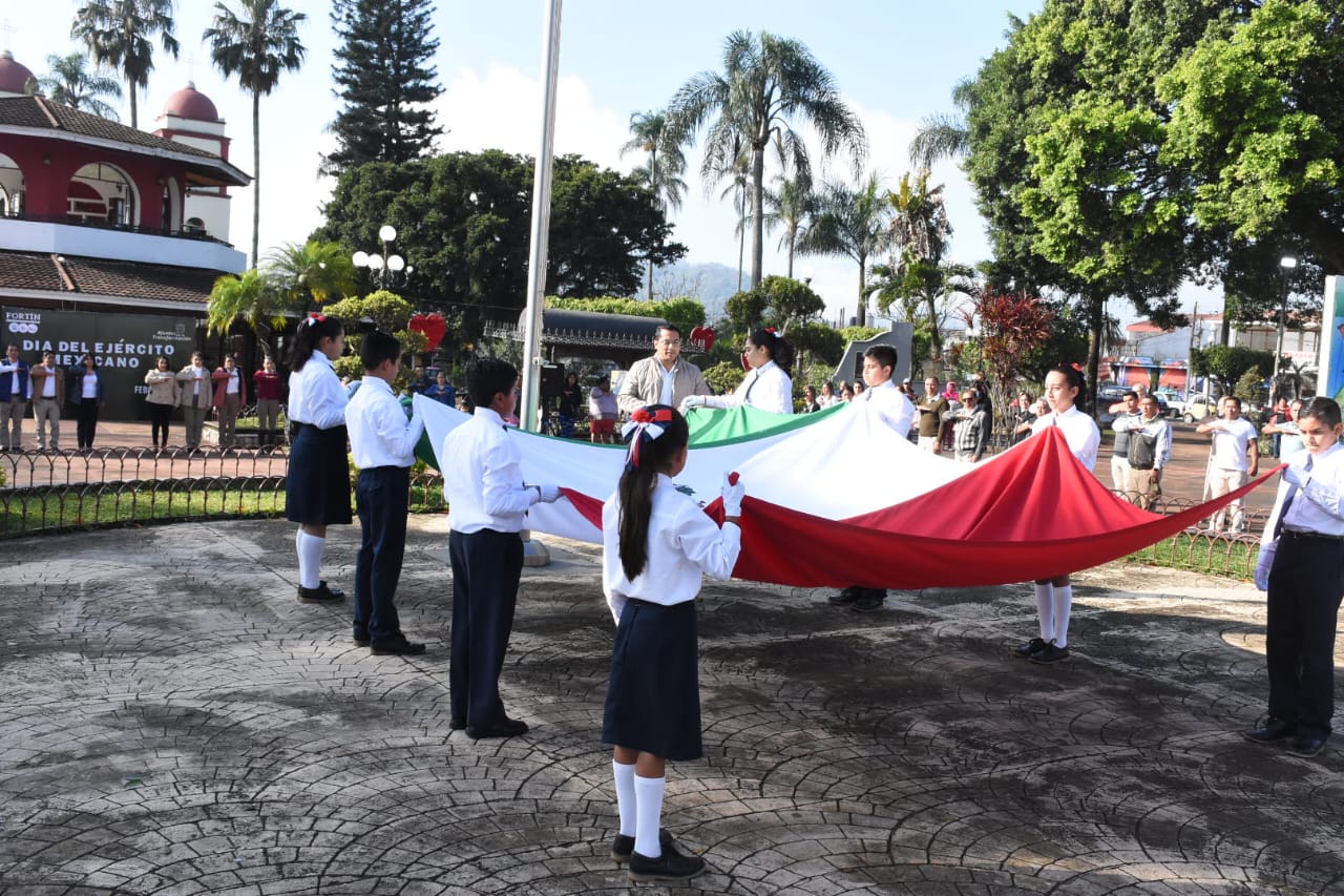 Fortín, Ver. – Con la participación de la escuela primaria Hermenegildo Galeana de la comunidad de Villa Unión, este lunes, el presidente municipal Gerardo Rosales Victoria, encabezó el acto cívico en conmemoración al Día del Ejército Mexicano, el cual se llevó a cabo en la explanada del parque Lázaro Cárdenas.