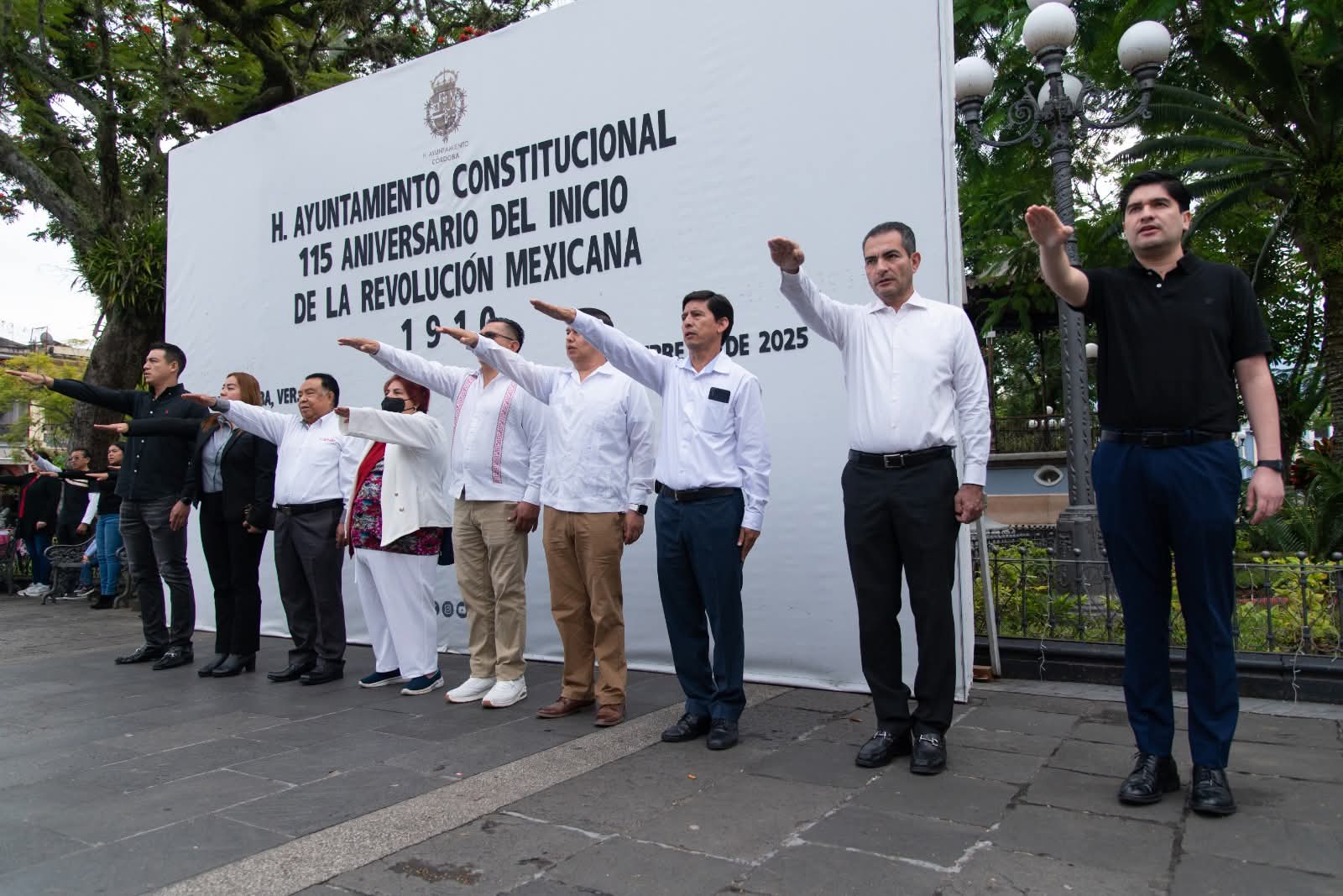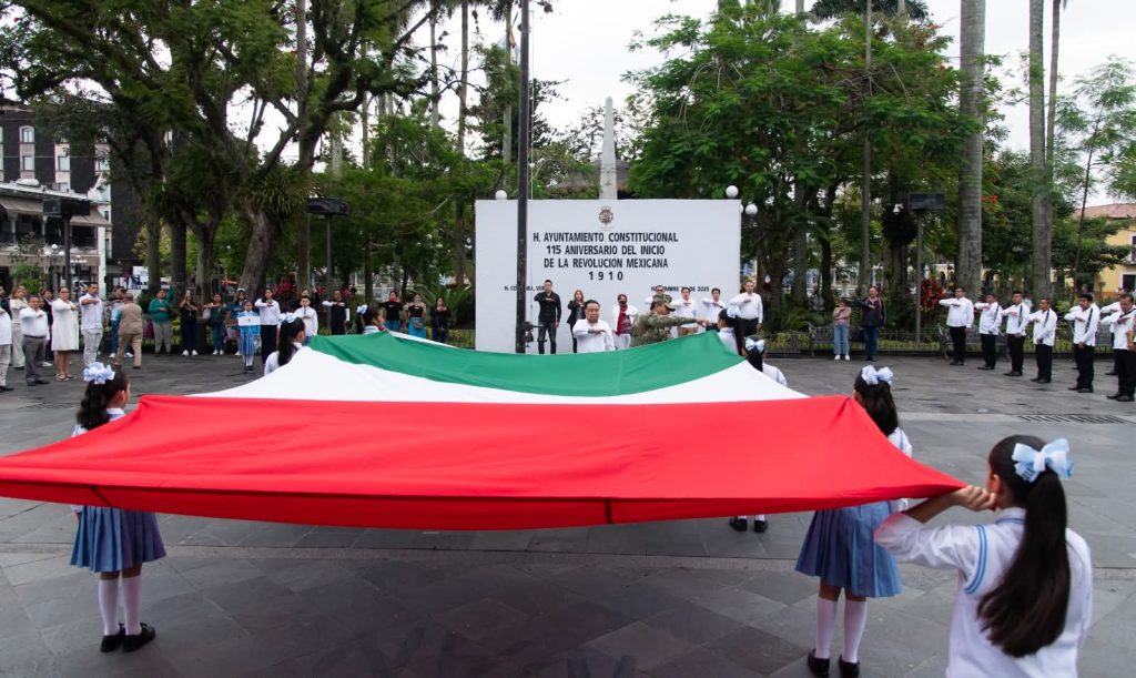 Córdoba, Ver.- Este jueves, en la explanada del parque 21 de mayo se llevó a cabo la ceremonia cívica por el 115 aniversario de la Revolución Mexicana, encabezada por autoridades municipales junto a estudiantes y docentes de la escuela primaria Ignacio Zaragoza, de la localidad San Matías–Los Mangos.