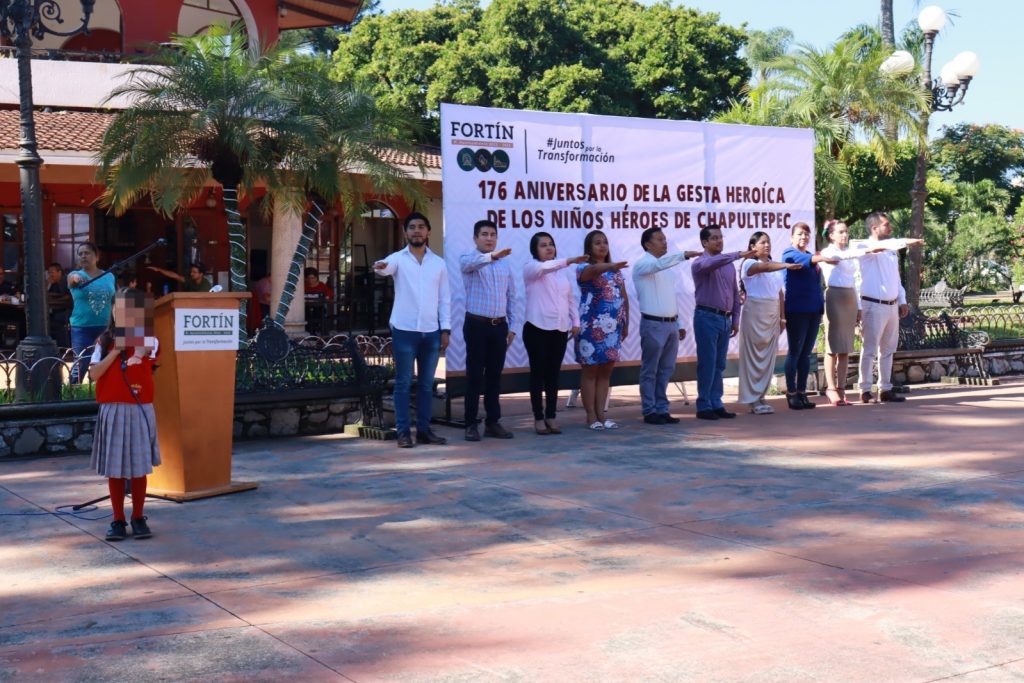 Fortín, Ver. – Con la participación de los alumnos de la escuela primaria Gral. Juan de la luz Enríquez, autoridades municipales encabezadas por el presidente municipal Gerardo Rosales Victoria, rindieron honores a los Niños Héroes que en 1847 ofrendaron sus vidas para dar muestra de valor, valentía, pundonor, entrega total y patriotismo a favor de la libertad de nuestra tierra sagrada.