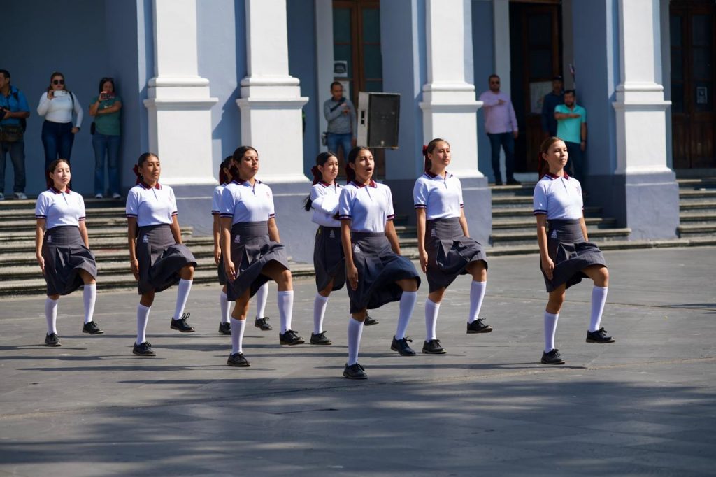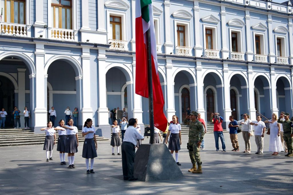 El estudiante, Jorge Luna Juárez dirigió el juramento a la Bandera, mientras que la alumna Sofía Melisa Lara Zarate entonó las gloriosas notas del Himno Nacional Mexicano y el Himno a Veracruz acompañada de la Banda Municipal de Música.