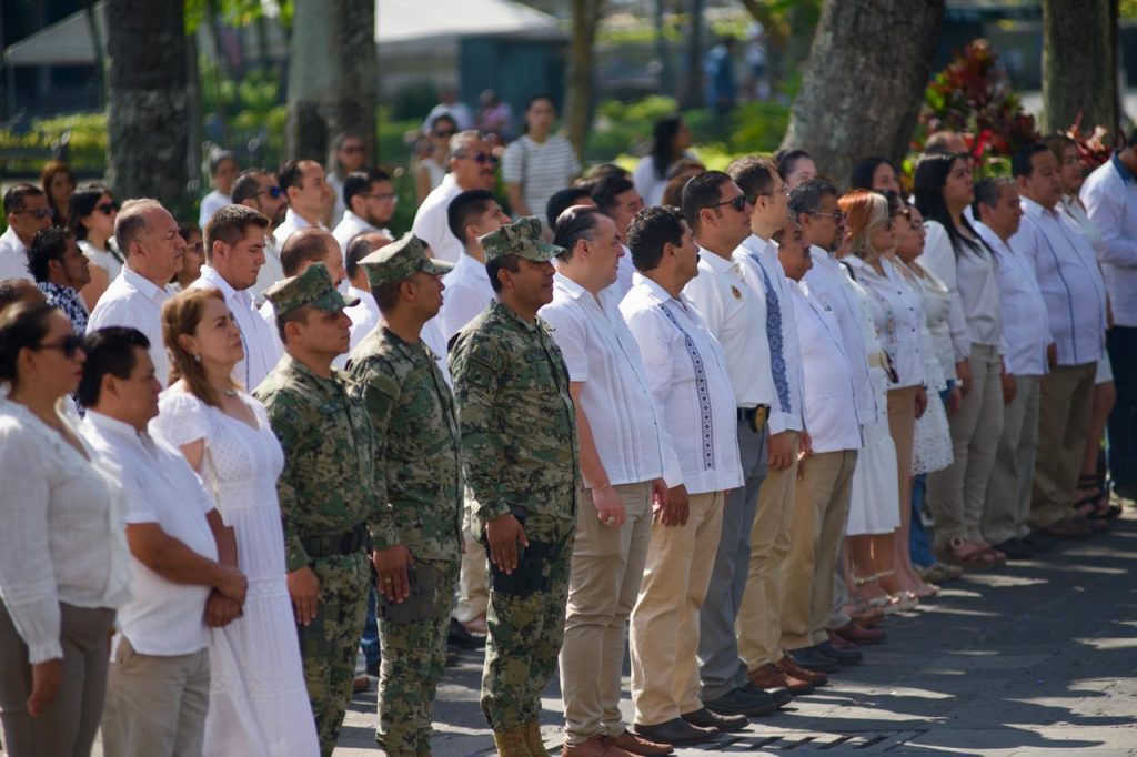 Correspondió al presidente municipal, Juan Martínez Flores realizar el izamiento de Bandera a toda asta, en la plaza principal de Córdoba.