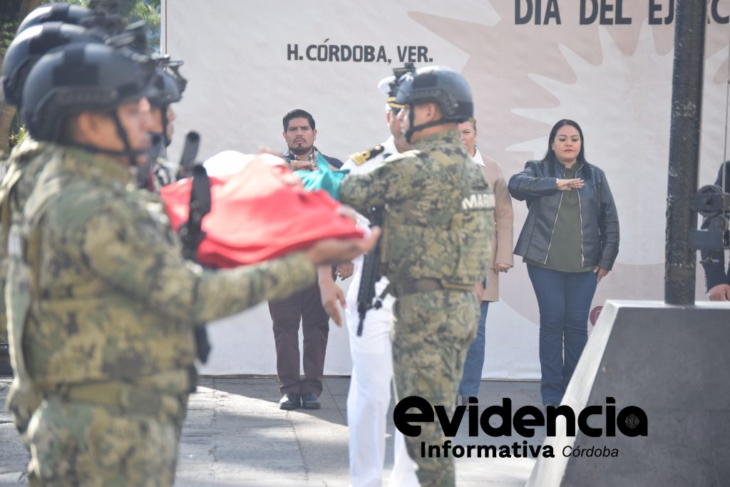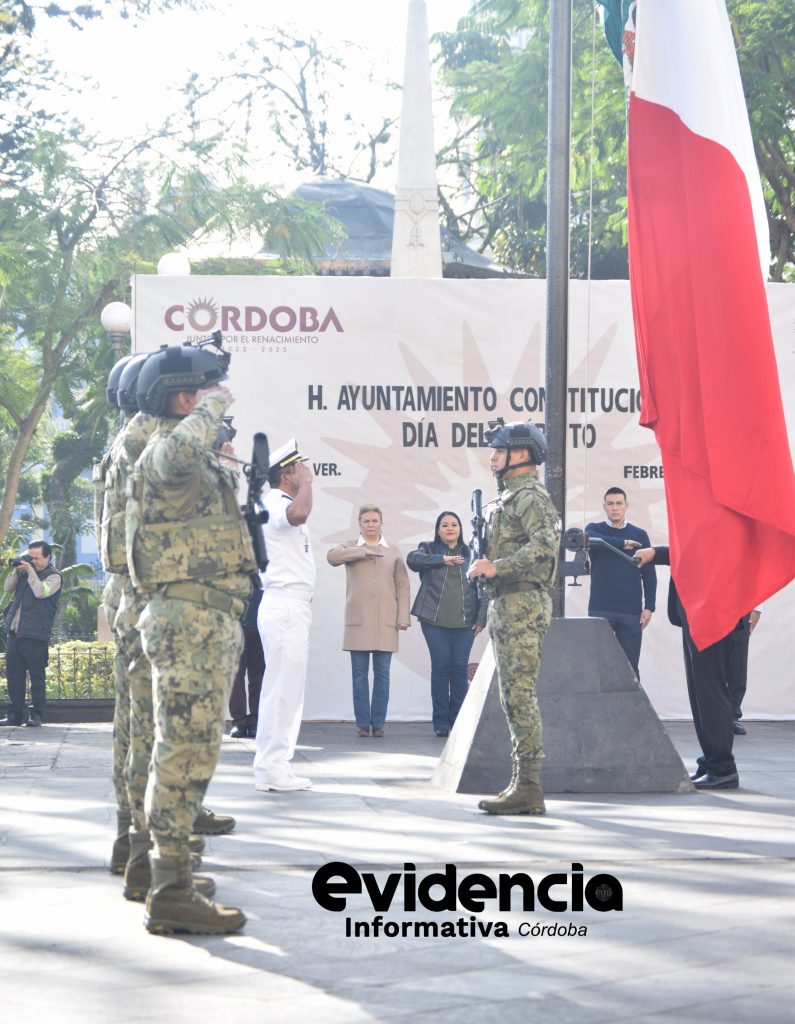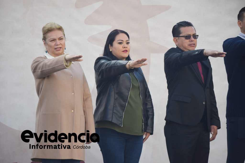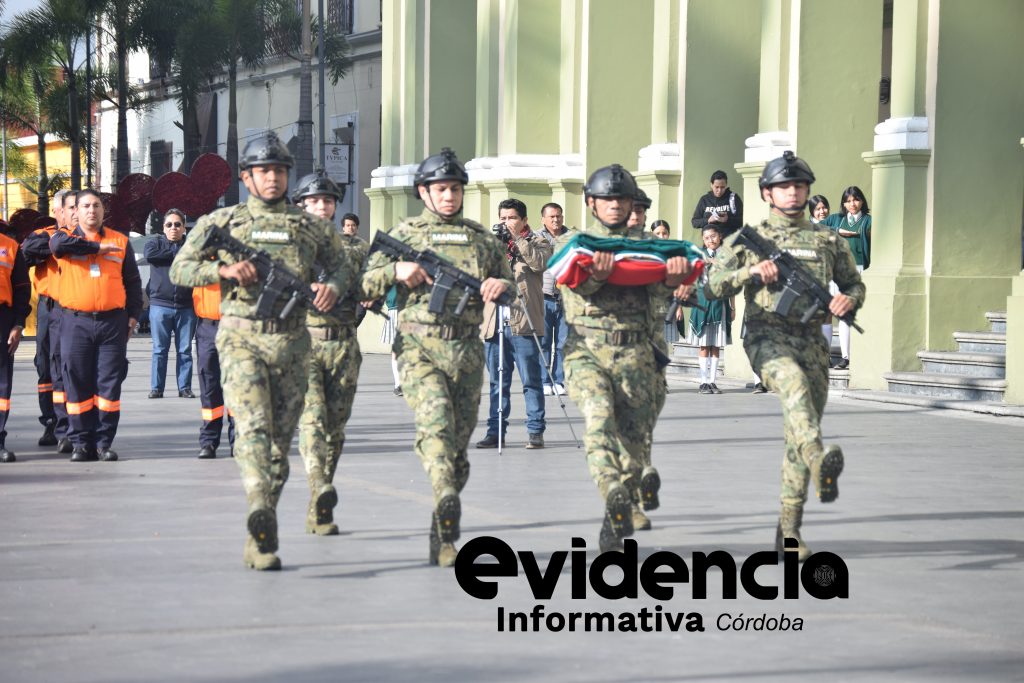 Posteriormente, la policía Marisol Lara Flores, dirigió el juramento al lábaro patrio; la Banda de Música Municipal de Córdoba entonó las gloriosas notas del Himno Nacional Mexicano y el de Veracruz.