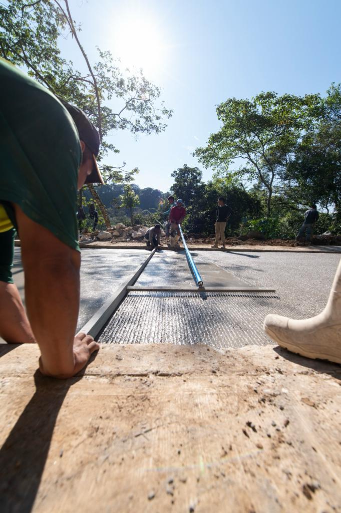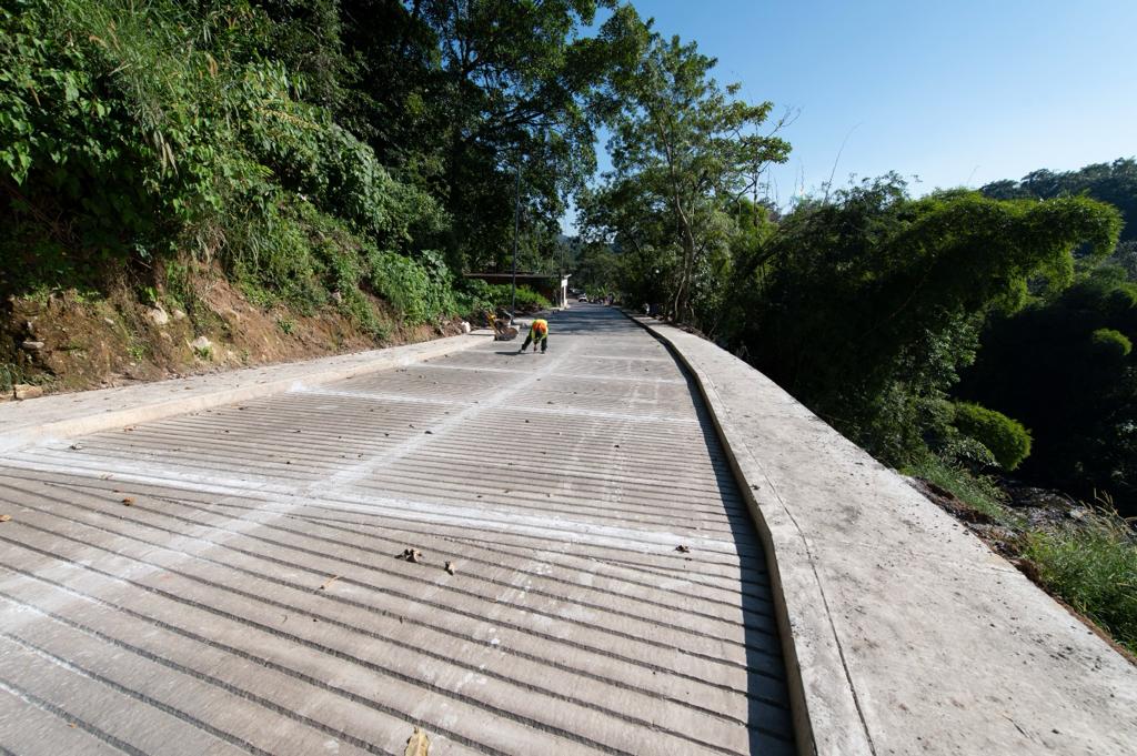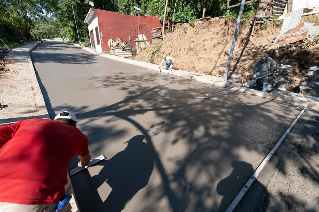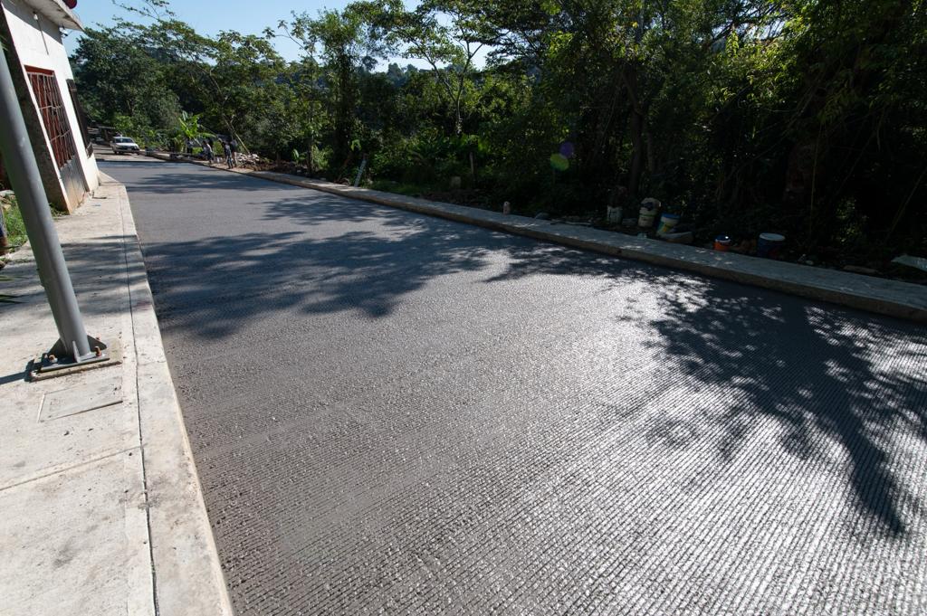 Los trabajos dan continuidad con el colado de pavimentación de concreto hidráulico, mientras que se cuentan con banquetas, guarniciones, muro de contención, traga tormentas, y la instalación de 15 luminarias con tecnología led, lo que prevé este mes se encuentren finalizadas las acciones implementadas en esta obra.
