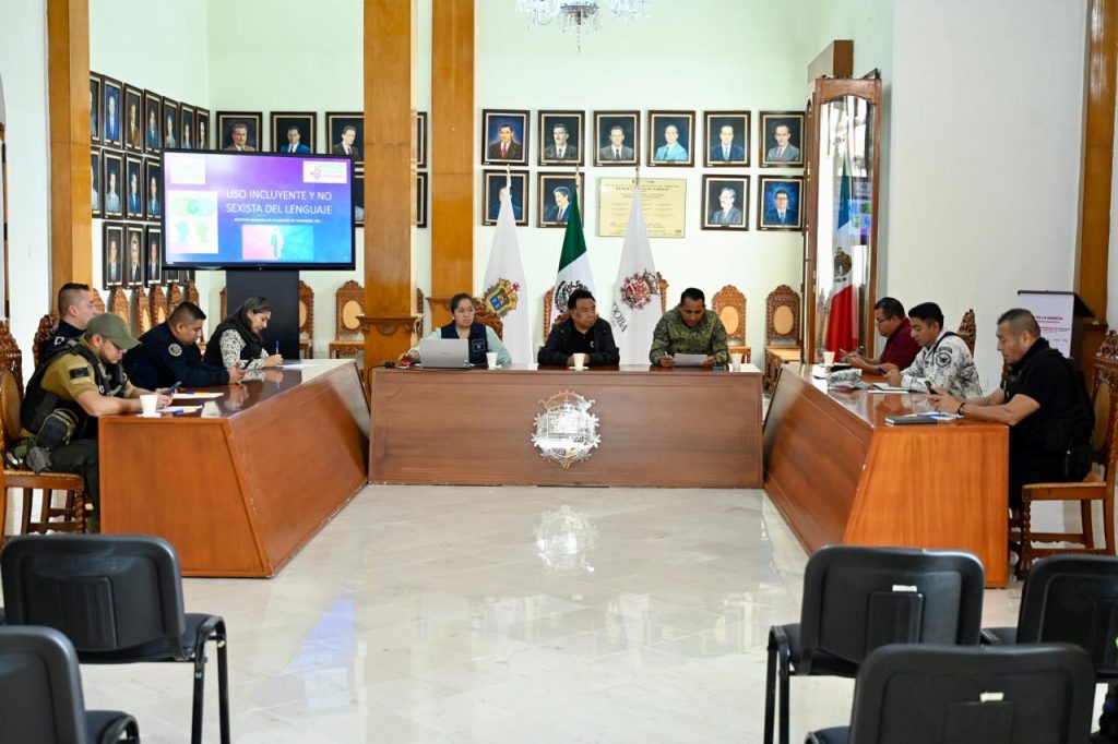 Durante estos trabajos se dio capacitación a quienes integran la mesa de seguridad con el tema: «Uso incluyente y no sexista del lenguaje” impartido por Karina Pérez Olguín, directora del Instituto de la Mujer del municipio Chocamán, con la participación de cuerpos de seguridad de Amatlán, Chocamán, Córdoba, Fortín, Yanga y directoras de los Institutos Municipales de la Mujer de los municipios que integran la región