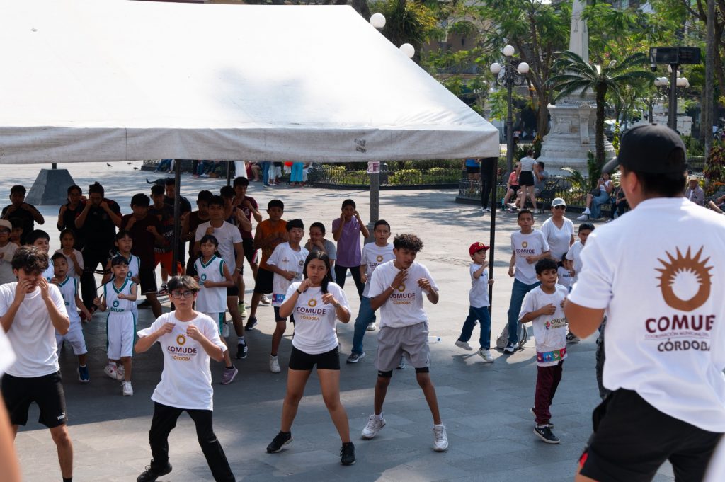 Córdoba, Ver., 06 de abril de 2025.- Está mañana un centenar de deportistas, jóvenes y niños participaron en esta jornada masiva de box simultánea en todo el país, promovida por la presidenta Claudia sheinbaum Pardo.