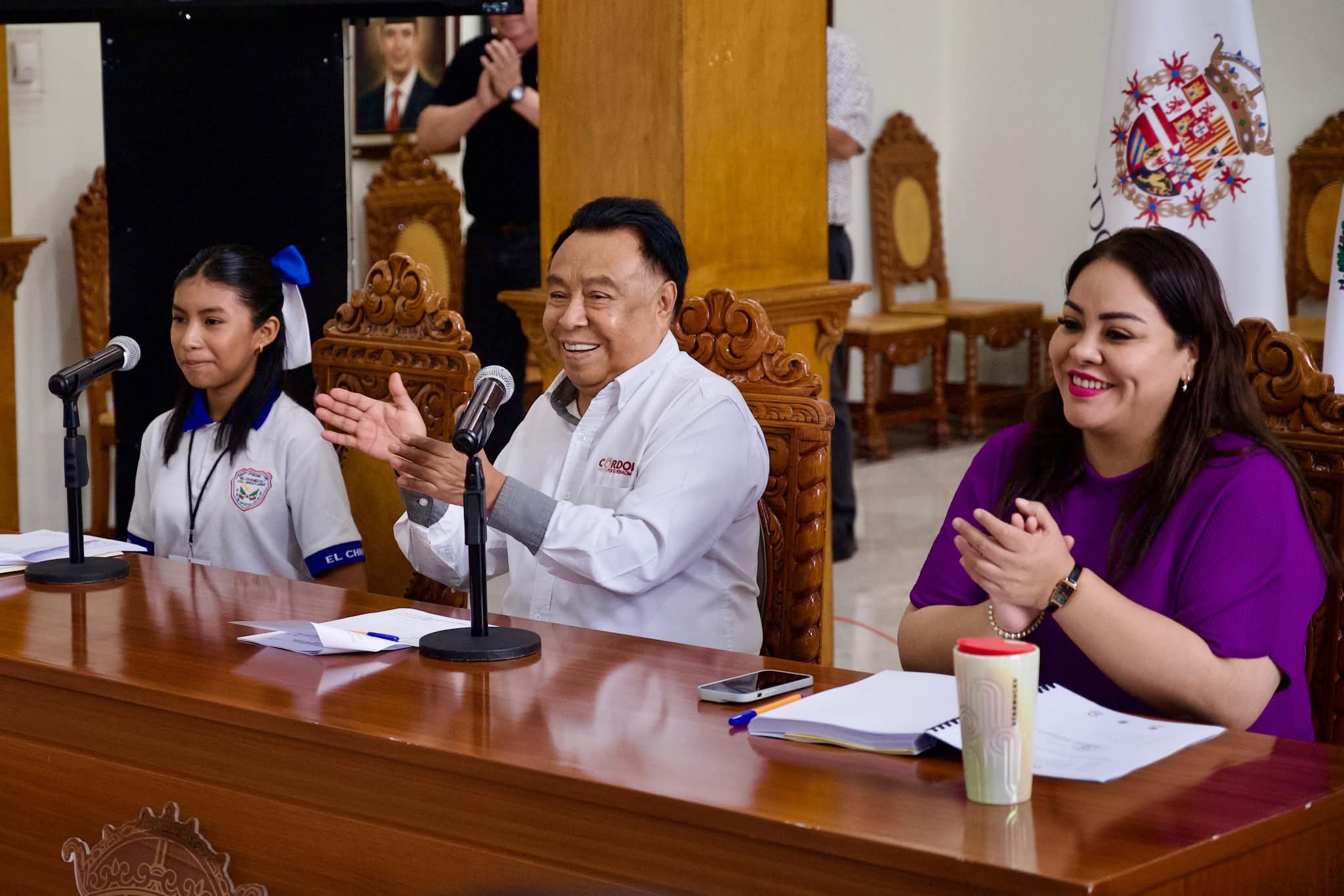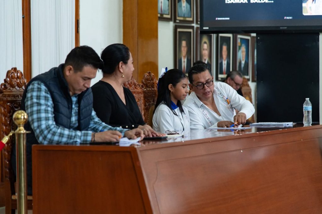 Convocados en el salón Cordobeses Ilustres, el Cabildo encabezado por el presidente Juan Martínez Flores, reconoció el interés de la niñez y juventud del municipio ante la convocatoria impulsada por el IMJUVE, donde resultó seleccionada la estudiante de 6° año de primaria de la escuela ‘El Chamizal’ de la colonia Miraflores, que tuvo la oportunidad de experimentar por un día el funcionamiento de la administración local.