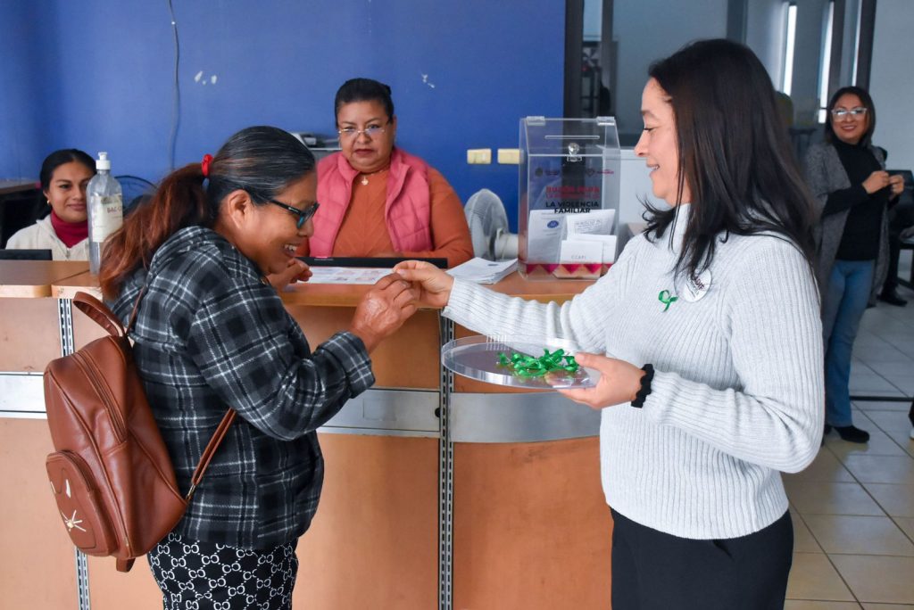 Como símbolo de concientización en la lucha contra la depresión, la presidenta del SMDIF, entregó a ciudadanos y personal del organismo un lazo verde con la finalidad de visibilizar la importancia de la salud mental.