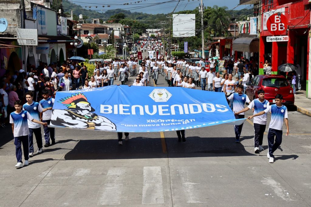 Desfilan escuelas y clubes deportivos en Conmemoración al 213 aniversario del inicio de la Independencia de México