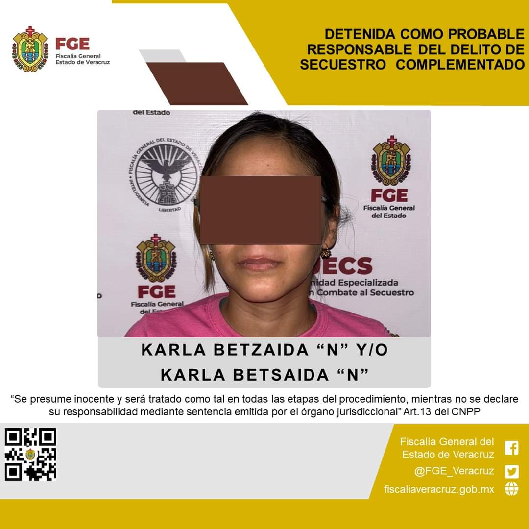 Coatzacoalcos, Ver., a 14 de noviembre de 2024.- La Fiscalía General del Estado informa que, de la Unidad Especializada en Combate al Secuestro sede Coatzacoalcos, en colaboración con la UECS del estado de Guerrero, lograron mediante un operativo policial en la ciudad de Minatitlán la detención de Karla Betzaida “N” y/o Karla Betsaida “N”, como probable responsable del delito de secuestro complementado.