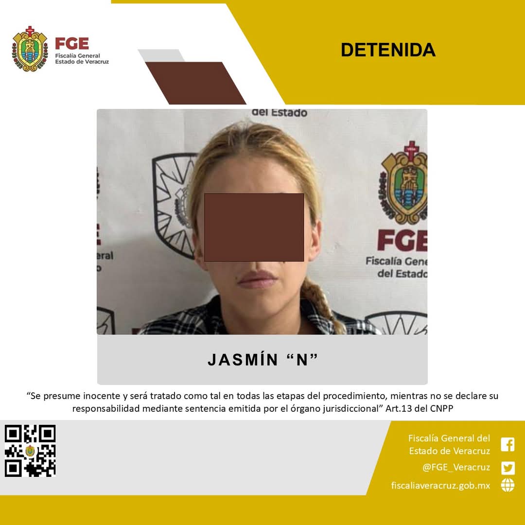 Veracruz, Ver., a 31 de Diciembre del 2024.- La Fiscalía General del Estado, informa que, elementos de la Policía Ministerial, realizaron la detención de Jasmín “N” por hechos posiblemente constitutivos de delito, cuando los elementos policiacos efectuaban actos de investigación en la colonia Reserva Tarimoya Cuatro en el municipio de Veracruz.