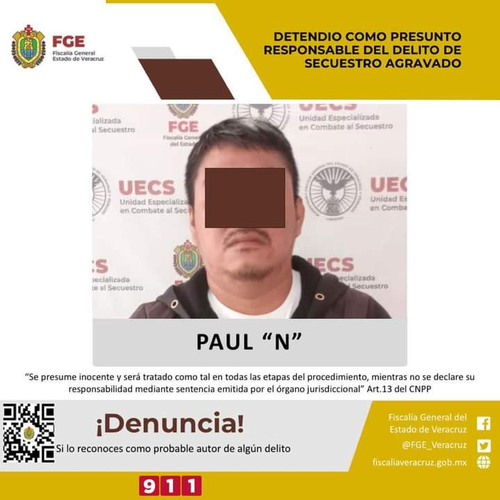Córdoba, Ver., 26 de diciembre de 2023.- La Unidad Especializada en Combate al Secuestro en colaboración con autoridades del Estado de Puebla, cumplimentó orden de aprehensión en contra de Paul “N” como presunto responsable del delito de secuestro agravado.
